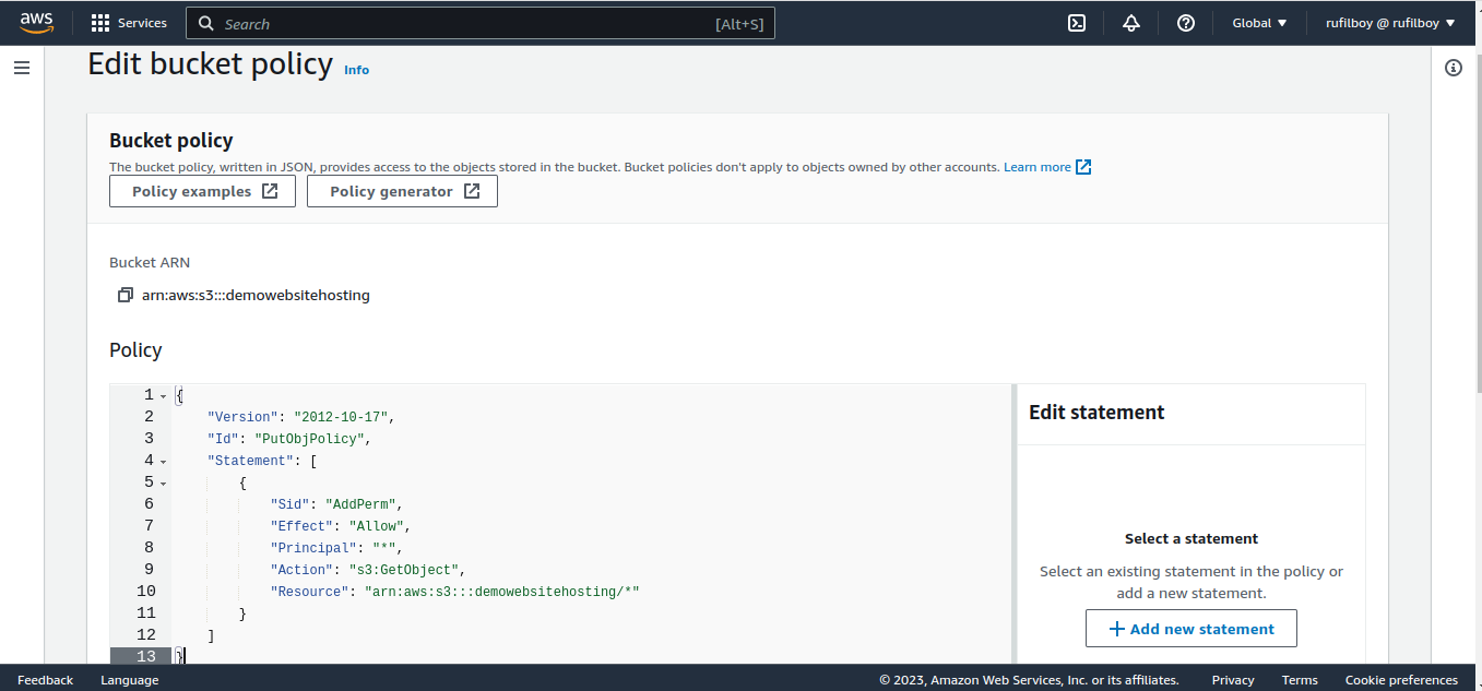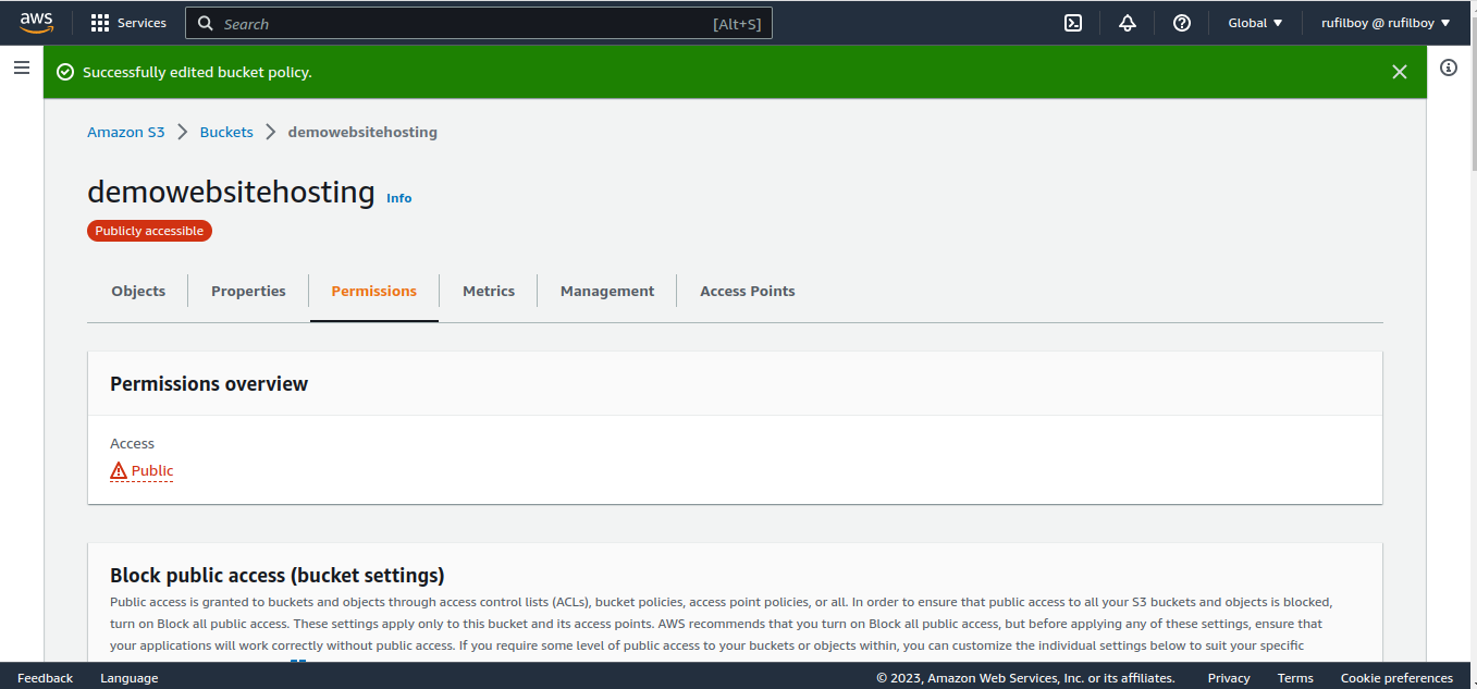 Set Permissions: Go to the Permissions tab and update the bucket policy to allow public access to your website's objects.