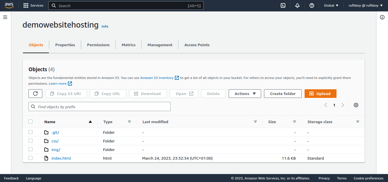 Upload Website Content: Upload your website content, including HTML, CSS, and JavaScript files, to the S3 bucket. Make sure to set the correct object permissions.